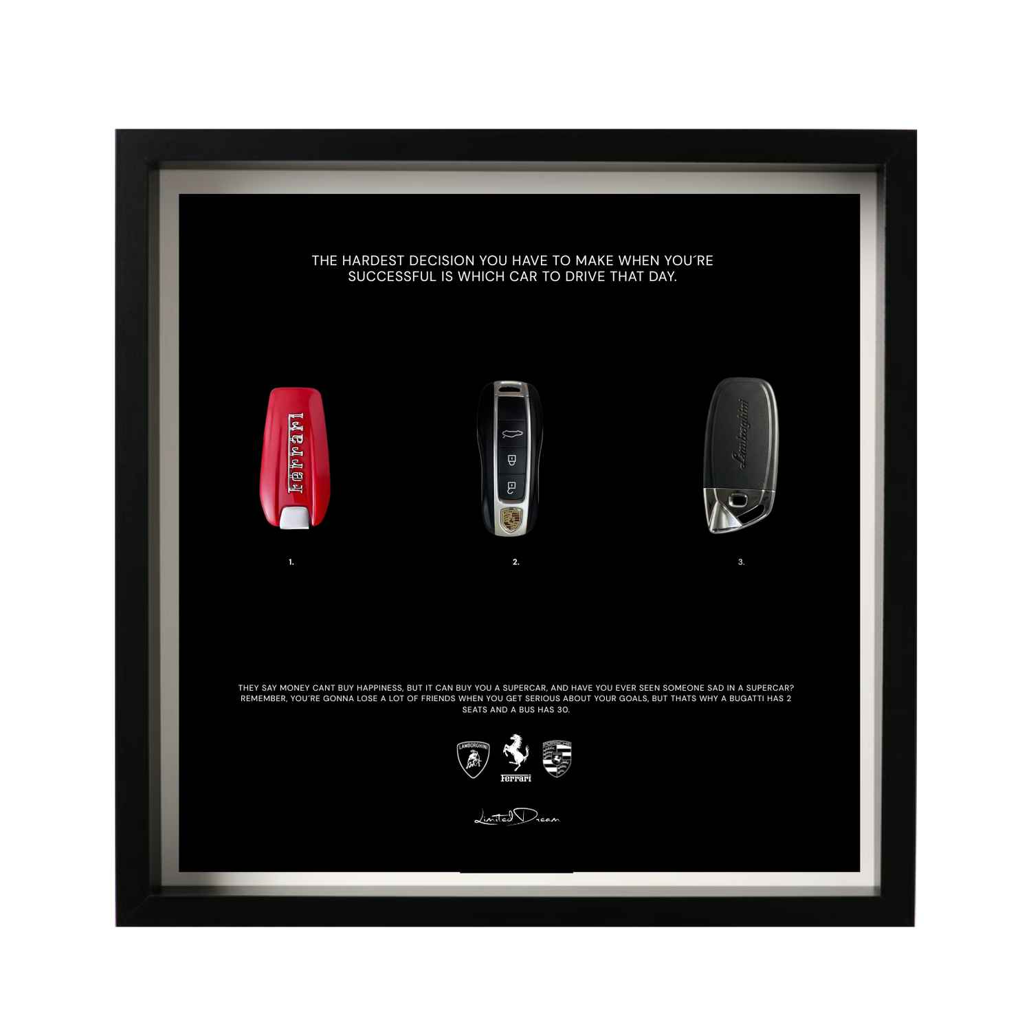 Wähle deinen Schlüssel – Ferrari, Lamborghini oder Porsche – und füge deine persönliche Botschaft hinzu.